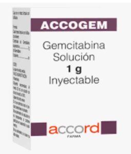 Accogem/ Gemcitabina 1 g/ 25 mL, solución inyectable, Laboratorio Accord.